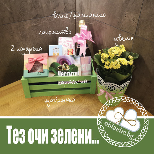 Tez Ochi Zeleni Vino Shampansko Lakomstvo 2 Podarka Kartichka Shajgichka Cvetya Oblachebg